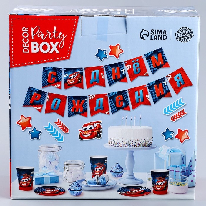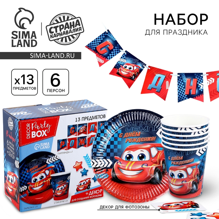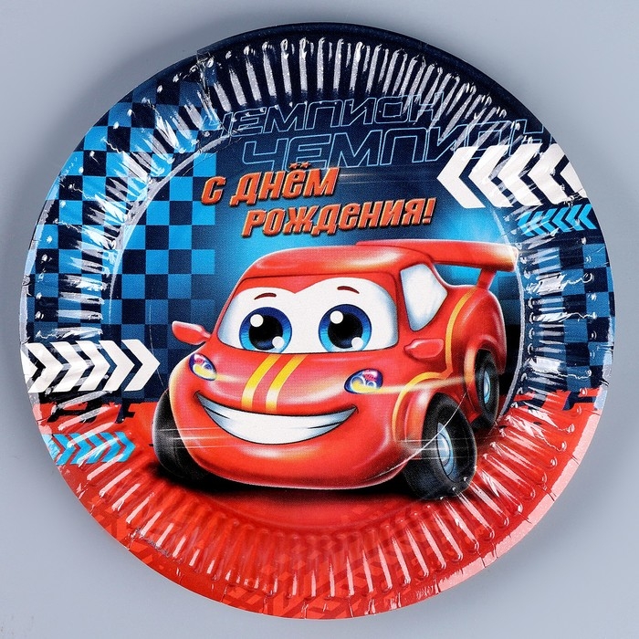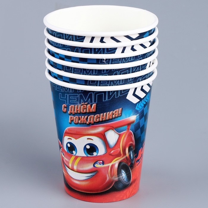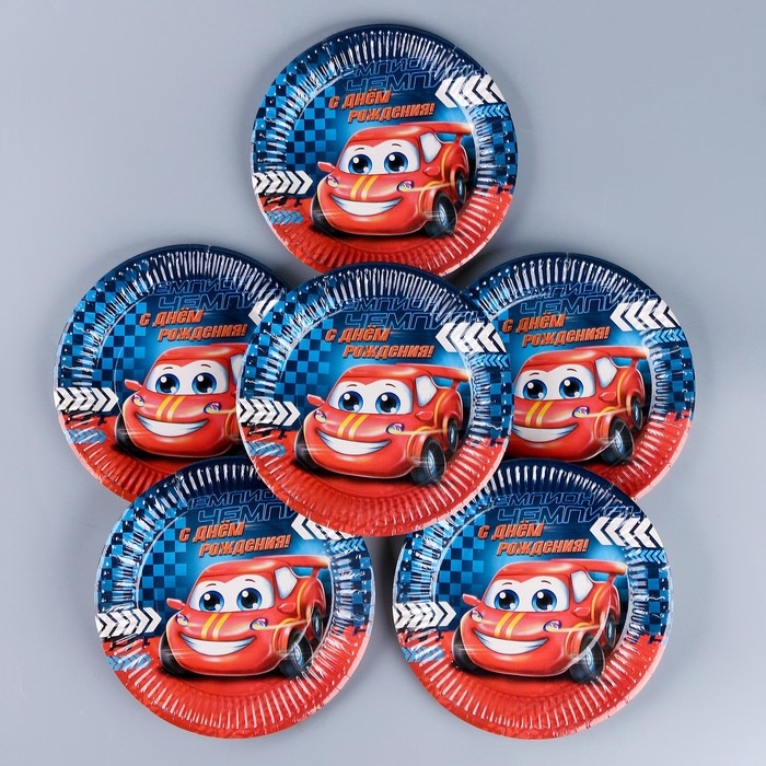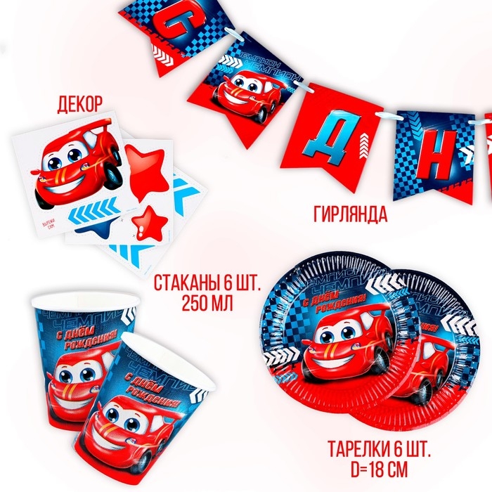 Набор бумажной посуды одноразовый декор «Тачка», 6 тарелок, 6 стаканов, 1 гирлянда, декор фотозоны