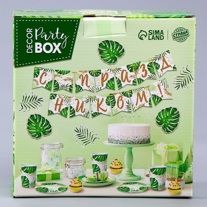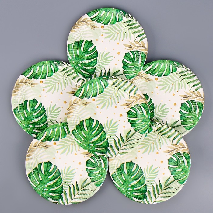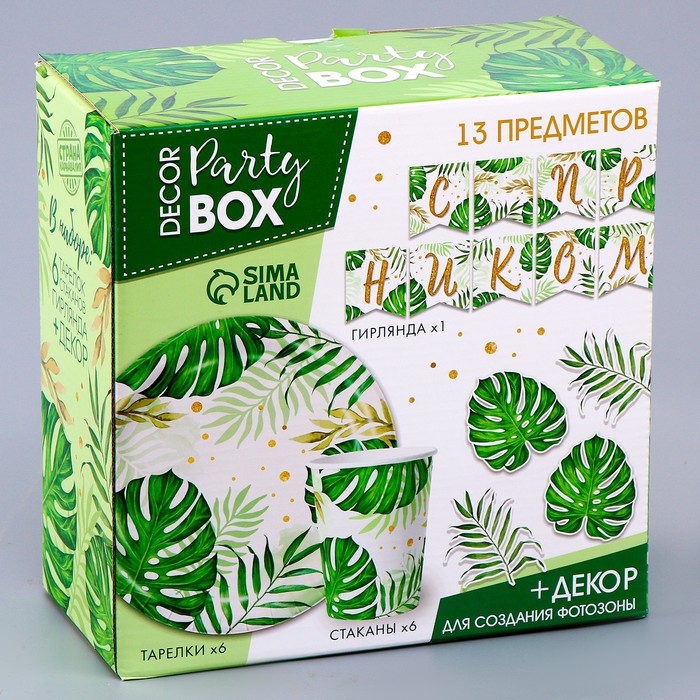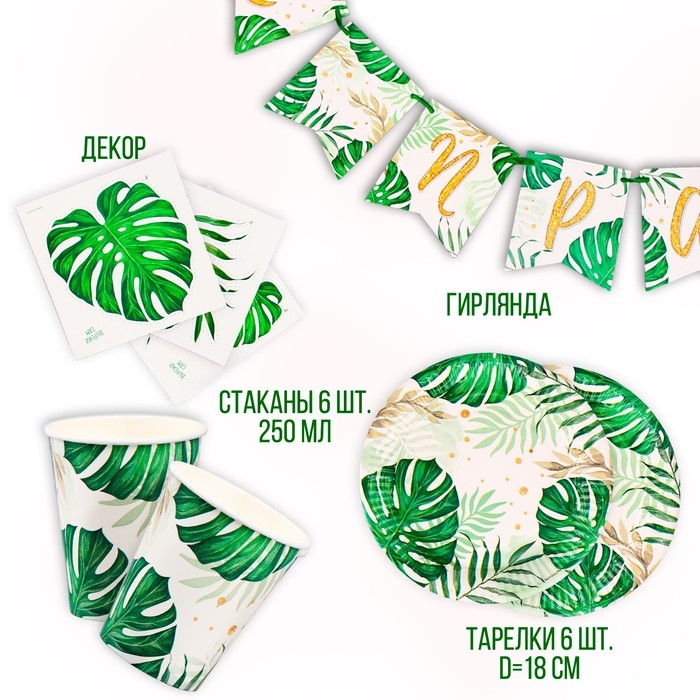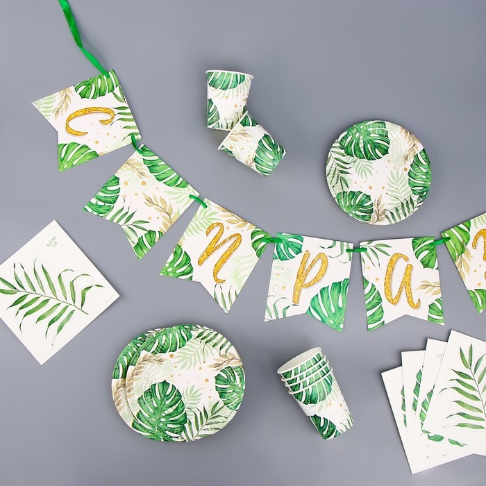 Набор бумажной посуды одноразовый декор «Эко», 6 тарелок, 6 стаканов, 1 гирлянда, декор фотозоны