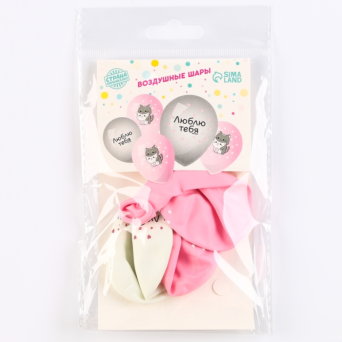Воздушный шар латексный 12" «Люблю тебя», милые котики, 5 шт.