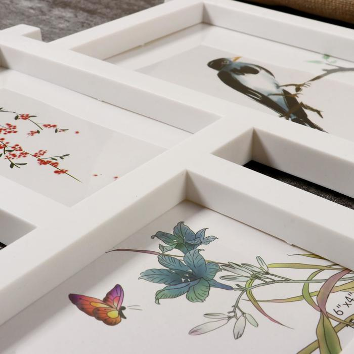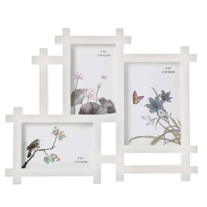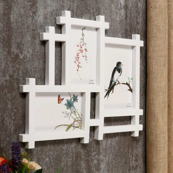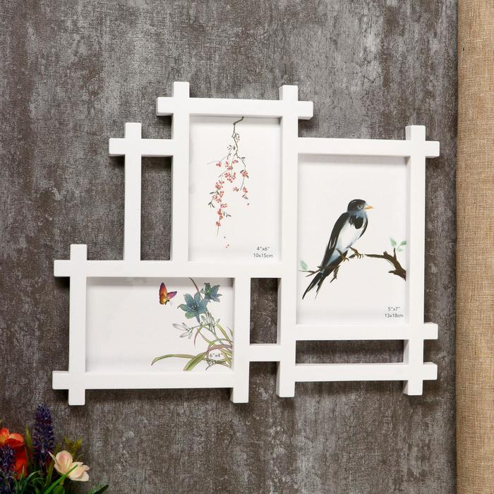 Фоторамка пластик на 3 фото 10х15, 13х18 см "Прямые линии" белая 30,5х38 см