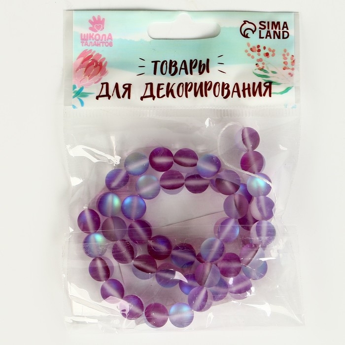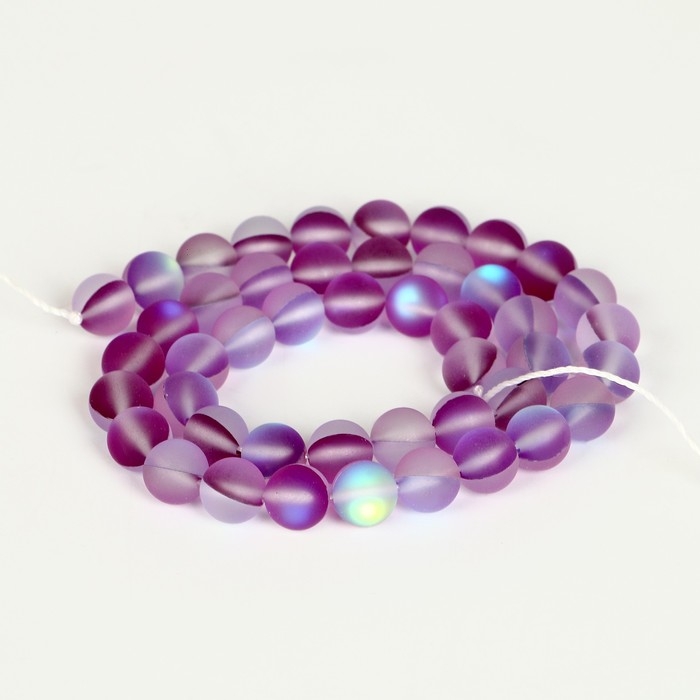 Бусины из натурального камня «Кошачий глаз», набор 46 шт., размер 1 шт. — 8 мм, фиолетовый