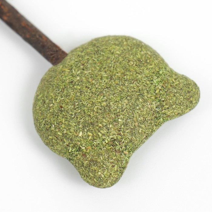 Кошачья мята имеет аромат, который особенно привлекает кошек. Играя с игрушкой, она может облизывать и обнюхивать мяту, что вызывает у нее ощущение удовольствия и блаженства. Палочка к которой прикреплена мята, позволяет владельцу контролировать игру и активизировать кошку.