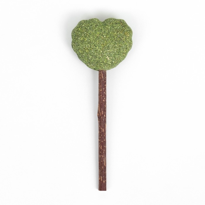 Прессованная мята прикреплена к палочке из мататаби - это натуральное растение, которое обладает особым ароматом и активными веществами, которые привлекают кошек и стимулируют их играть и жевать палочки. Представлена в виде "Сердца".