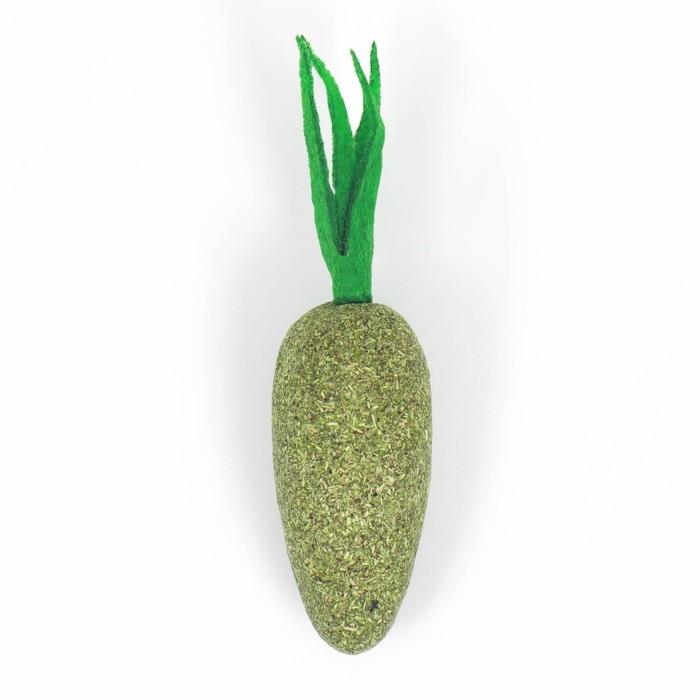 Кошачья мята имеет аромат, который особенно привлекает кошек. Играя с игрушкой, она может облизывать и обнюхивать мяту, что вызывает у нее ощущение удовольствия и блаженства. Сверху игрушки прикреплен мягкий текстиль в виде батвы, напоминая "Морковку".