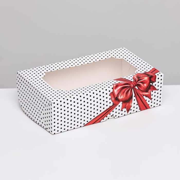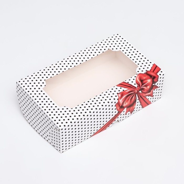 Коробка складная с окном под зефир "Горошек с бантиком", 25 х 15 х 7 см