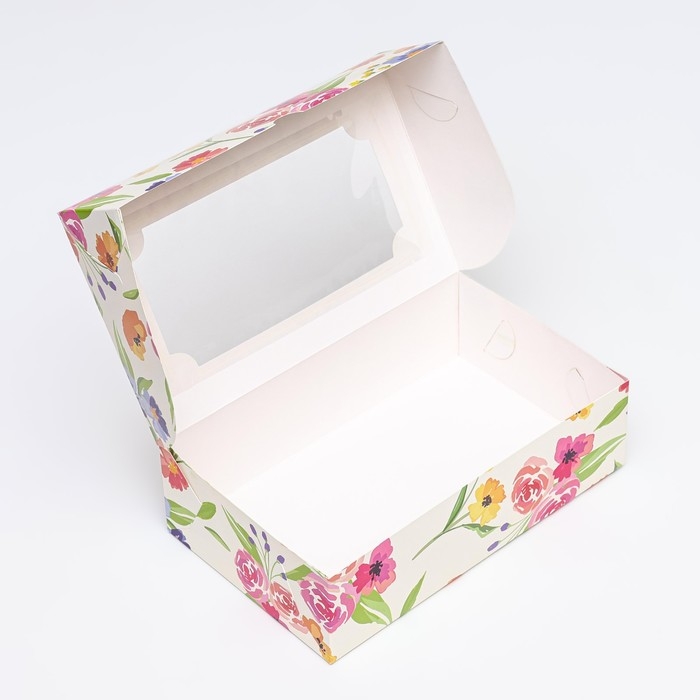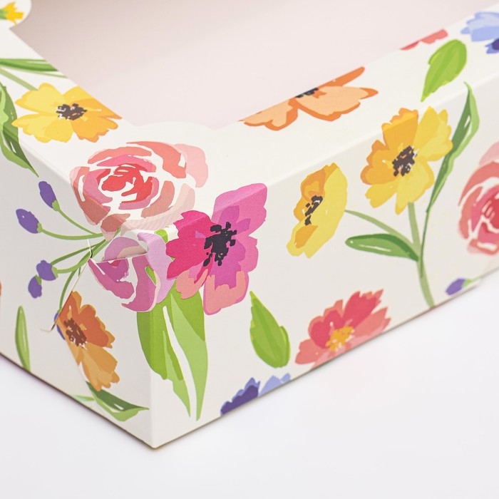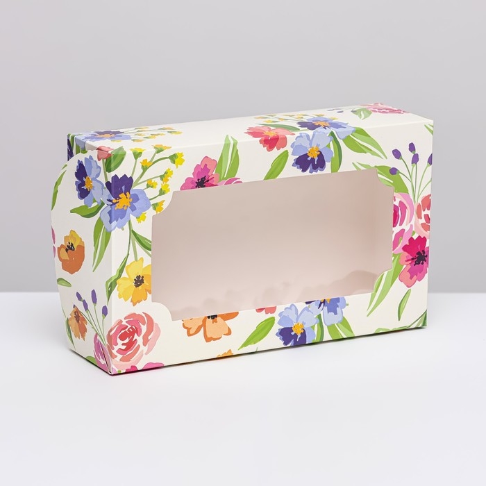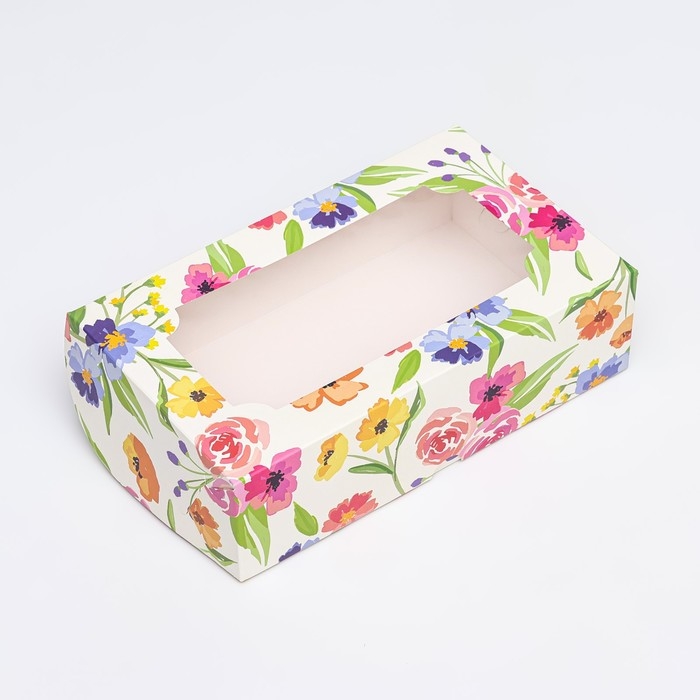 Коробка складная с окном под зефир "Полевые цветы", 25 х 15 х 7 см
