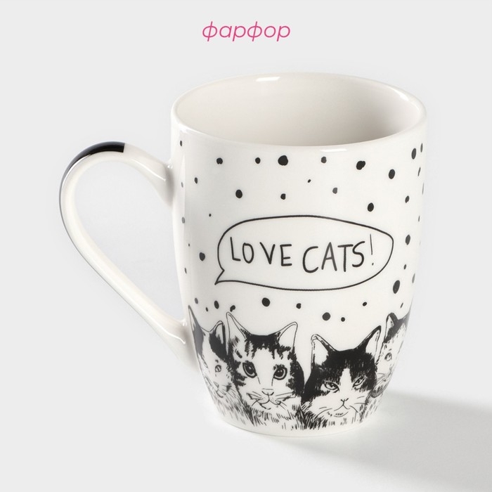 Кружка керамическая Доляна «Коты - это любовь», 350 мл, цвет белый