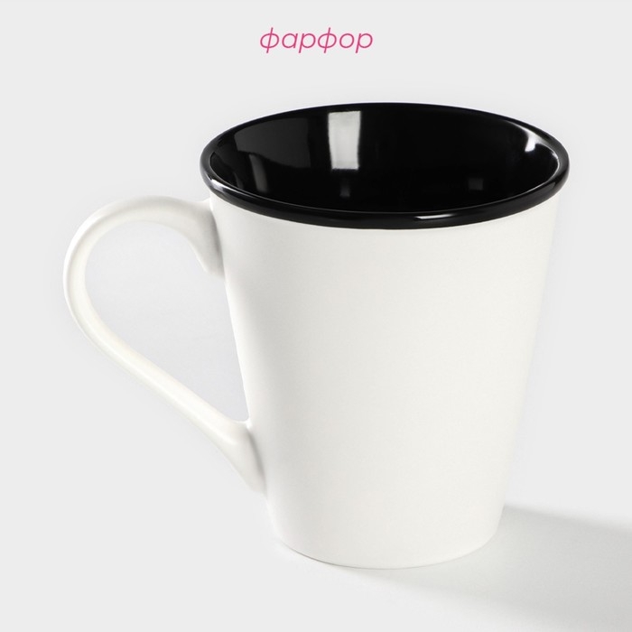 Кружка фарфоровая Доляна «Формула кофе», 340 мл, цвет белый и чёрный