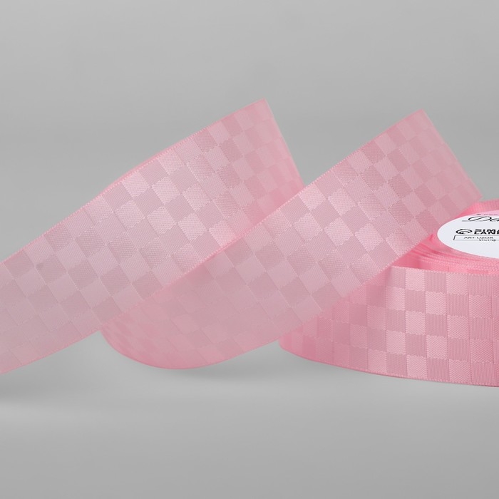 Лента декоративная «Квадраты», 25 мм × 9,1 ± 0,5 м, цвет розовый