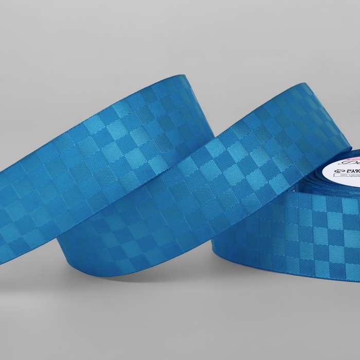 Лента декоративная «Квадраты», 25 мм × 9,1 ± 0,5 м, цвет ярко-голубой