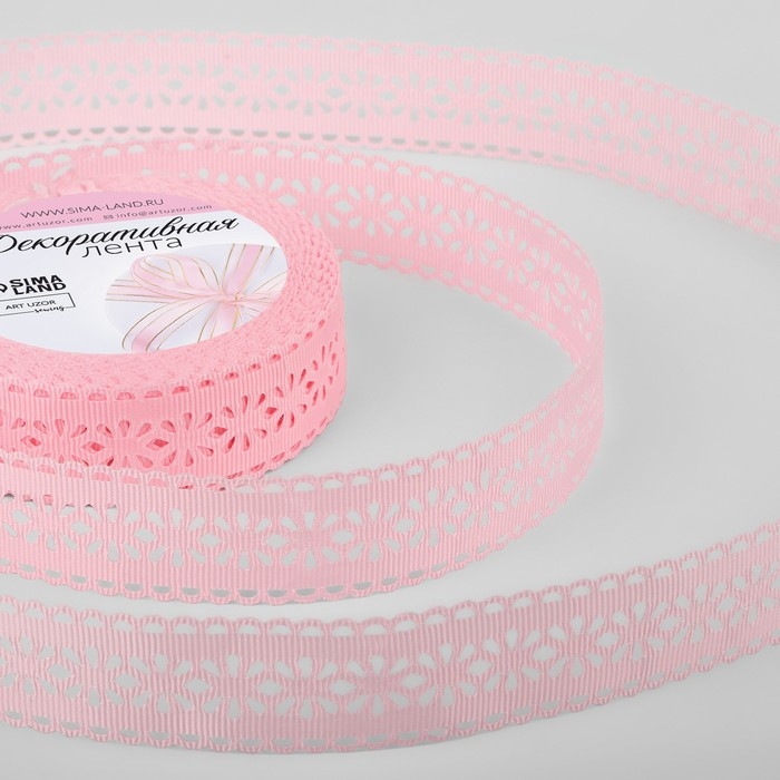 Лента декоративная, репсовая «Ажурные цветы», 25 мм × 9,1 ± 0,5 м, цвет розовый
