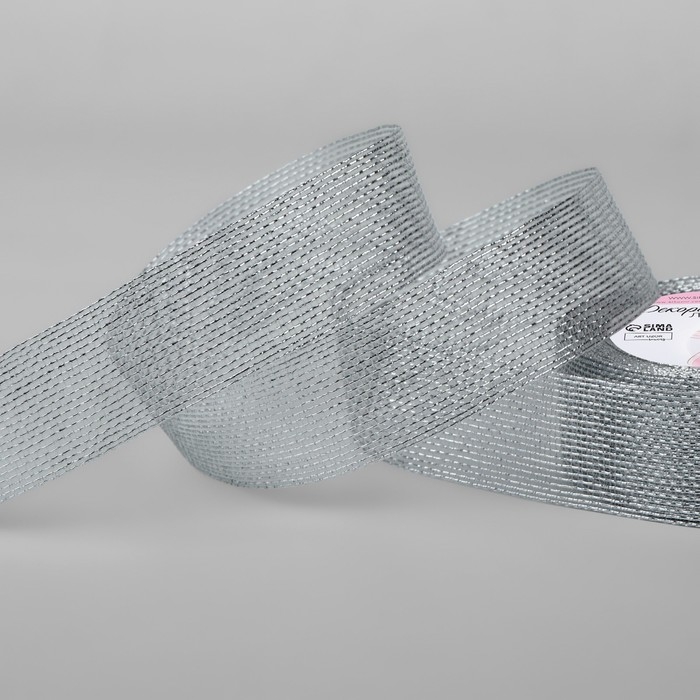 Лента декоративная «Сетка», 25 мм × 9,1 ± 0,5 м, цвет серебряный