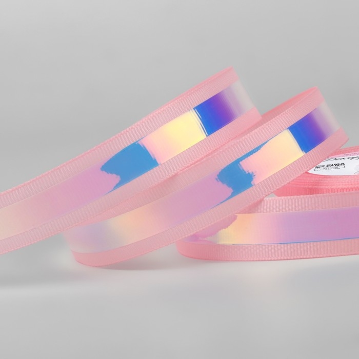 Лента декоративная, с голографией, 20 мм × 9,1 ± 0,5 м, цвет розовый
