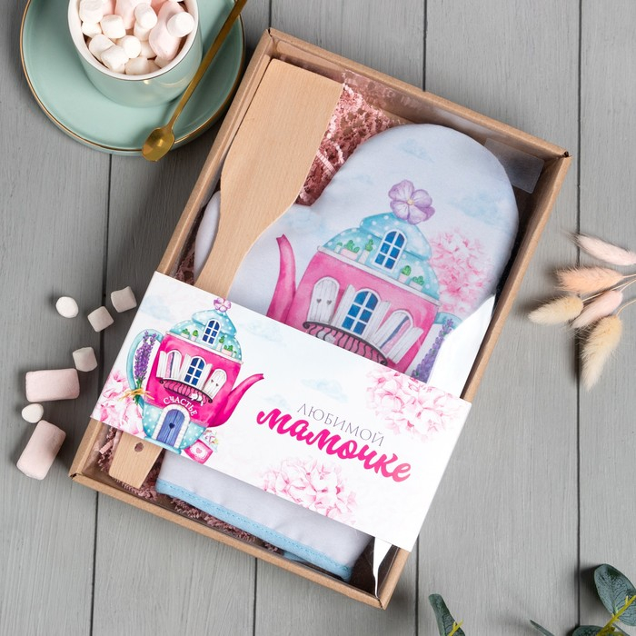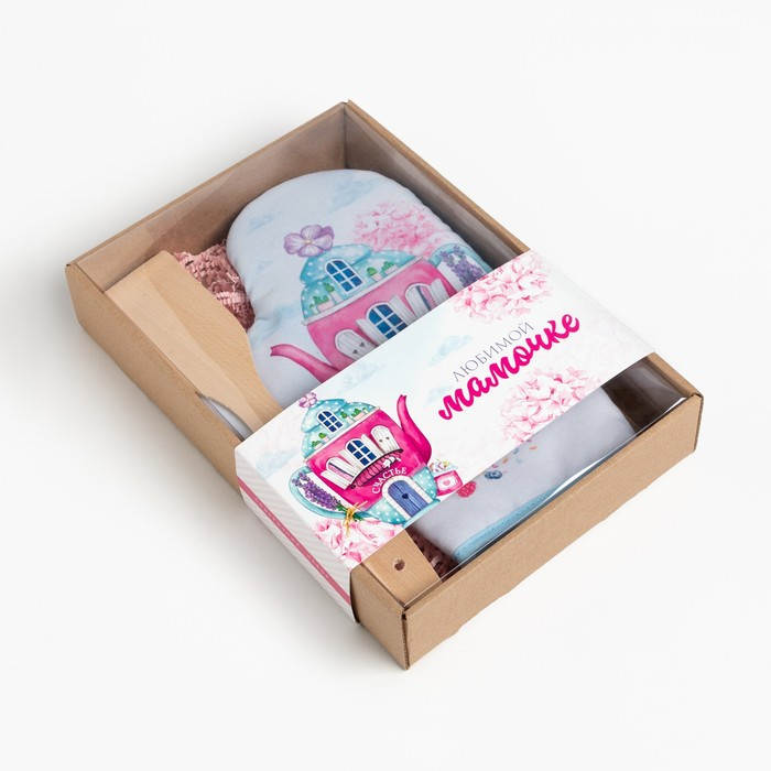Кухонный набор "Любимой мамочке",варежка-прихватка 20х28см, лопатка деревянная
