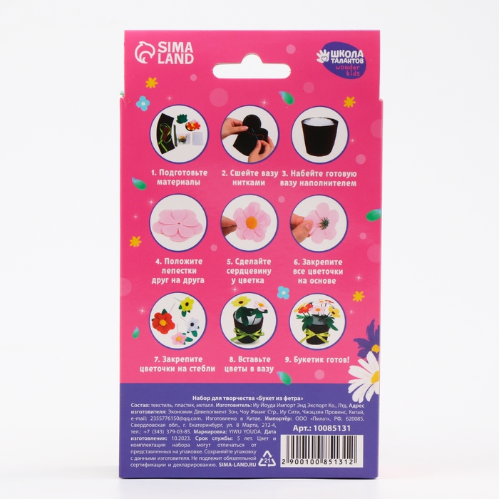 Поделка к празднику — отличный повод провести время с ребёнком и создать замечательную поделку. Детям нравится мастерить из самых невероятных материалов. Оригинальный набор для создания фетрового букета по-настоящему увлечёт ребёнка и станет удачным подарком для талантливого малыша!