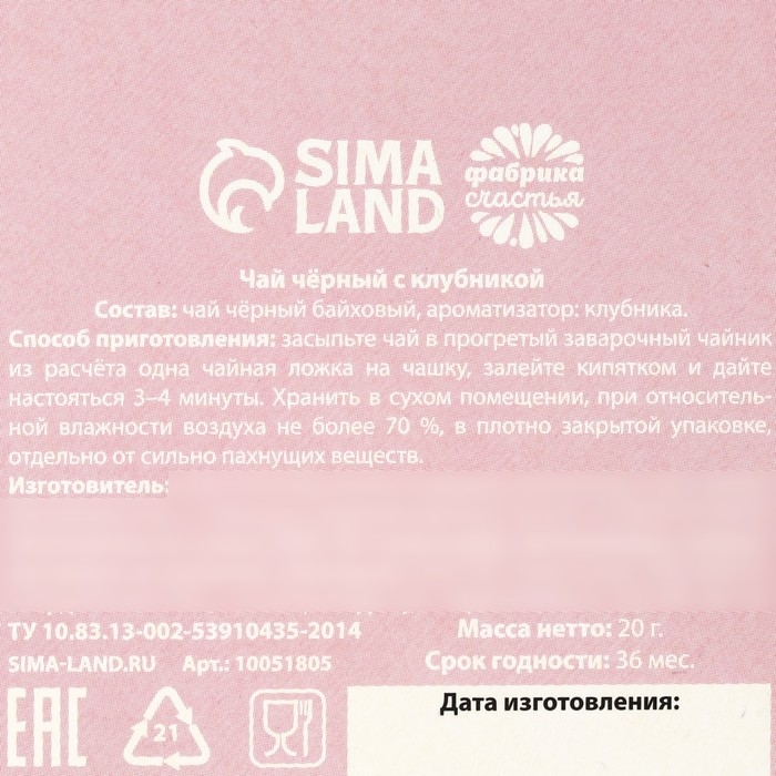 Чай чёрный «Для тебя», вкус: клубника, 20 г.
