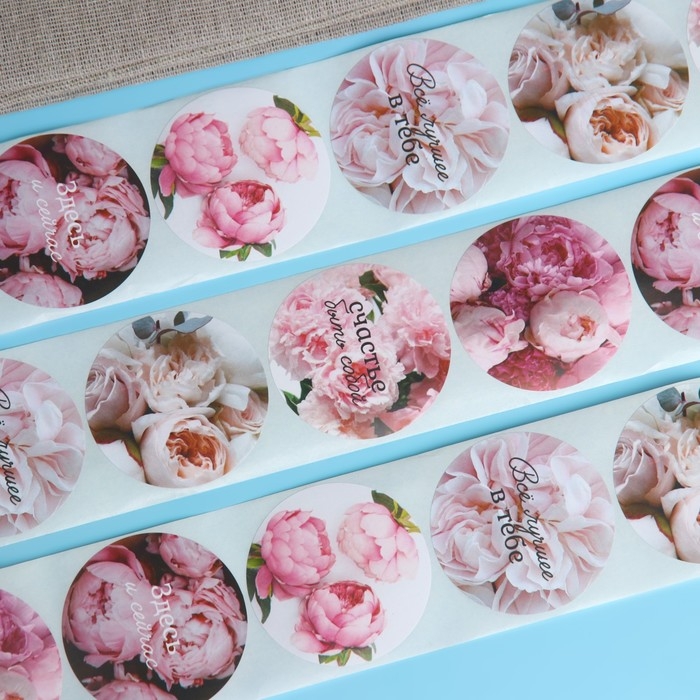 Наклейки для цветов и подарков "Пионы", 4,4 х 4,4 см, 252 шт.
