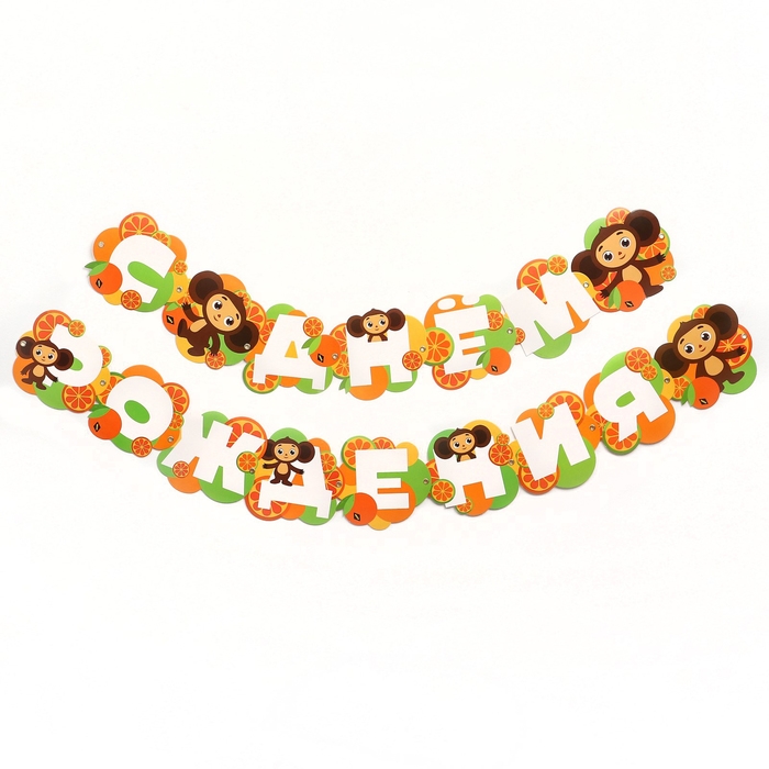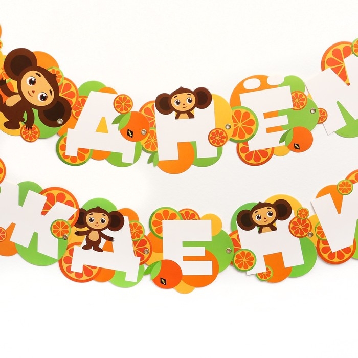 Гирлянда на люверсах "С Днем Рождения", длина 224 см, Чебурашка