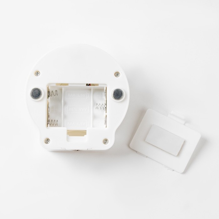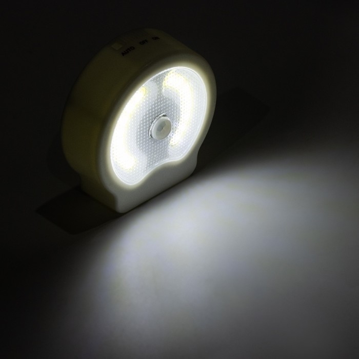Фонарь - светильник предназначен для включения и выключения искусственного освещения в помещении и на улице. Цвет корпуса светильника-выключателя: белый с двумя жёлтыми вставками в центре корпуса. онарь оснащен датчиком движения: при появлении движущегося объекта в зоне "видимости" датчика движения, происходит автоматическое включение фонаря. Можно крепить к поверхности с помощью встроенных магнитов на задней панели или ставить на горизонтальную поверхность с помощью встроенной пластмассовой подставки. Имеется встроенный регулятор яркости на передней панели светильника и встроенный отсек для 3-х батареек типа ААА.