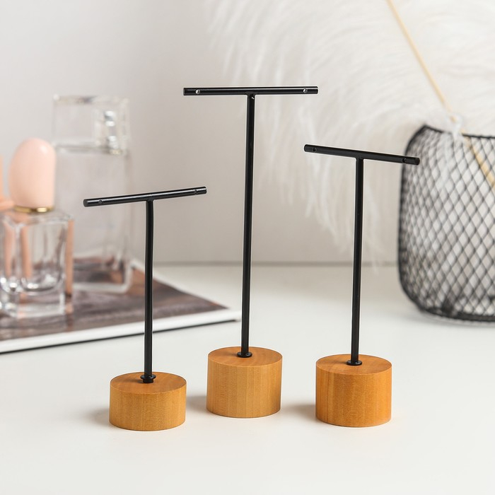 Подставка под серьги Т-образная, набор 3 шт., 16, 13,5, 11,5 см, цвет чёрный