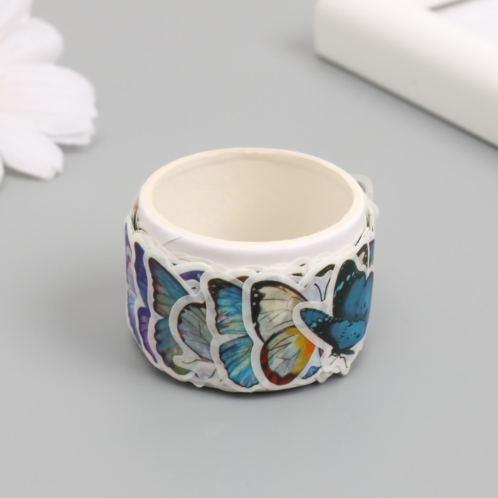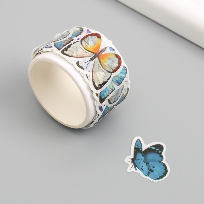 Наклейка бумага "Разноцветные бабочки" d=2 см 100 шт в рулоне 3,5х3,5 см