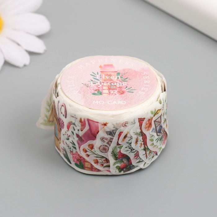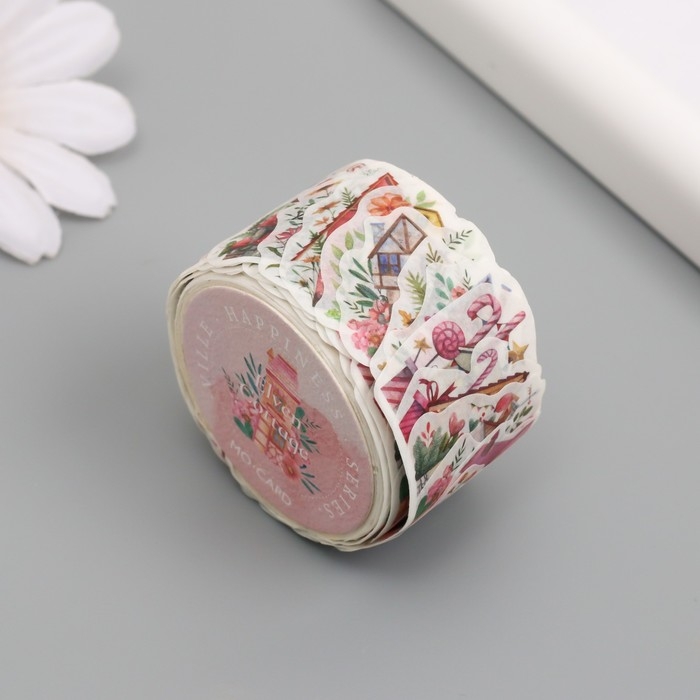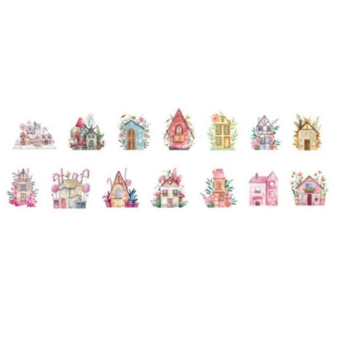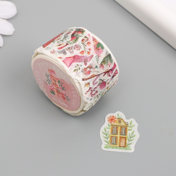 Наклейка бумага "Сказочные домики" 1,2 - 2,5 см 100 шт в рулоне 11х8 см