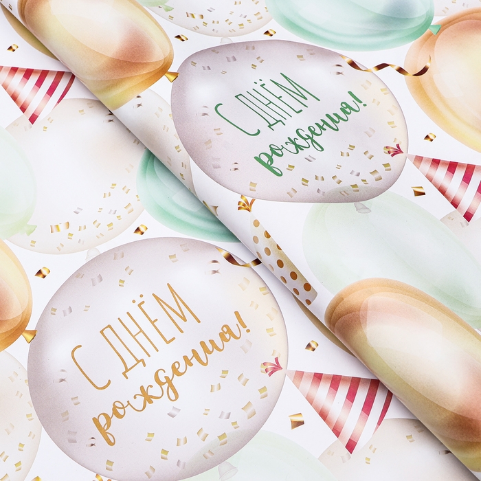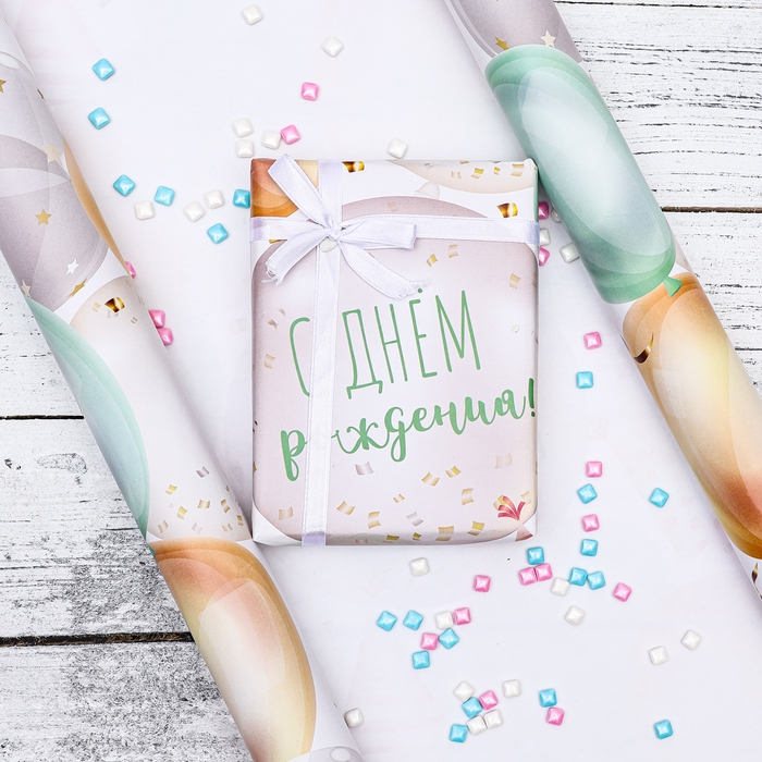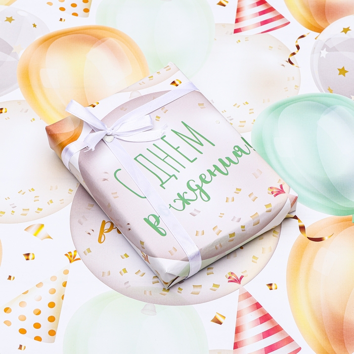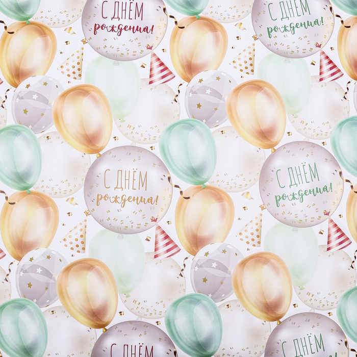 Бумага упаковочная, глянцевая "С Днем Рождения", 70 х 100 см, 1 лист