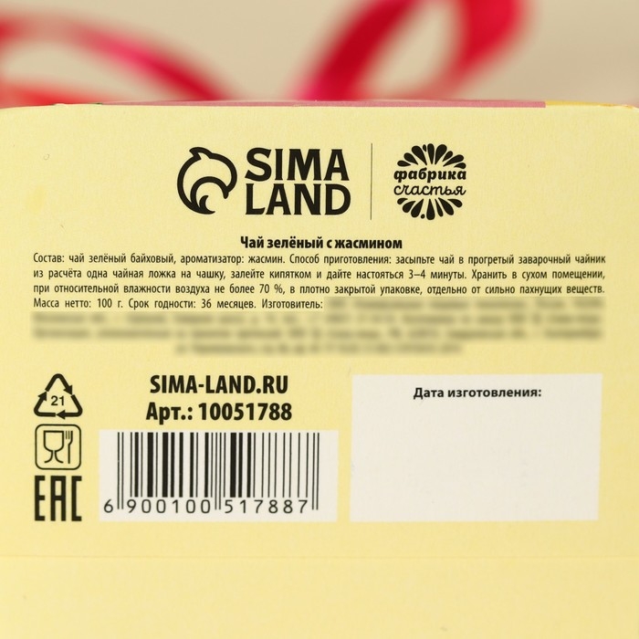 Состав: чай зелёный байховый, ароматизатор: жасмин.