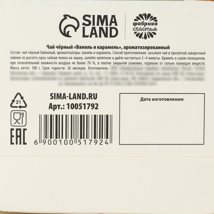 Состав: чай чёрный байховый, ароматизатор: ваниль и карамель.
