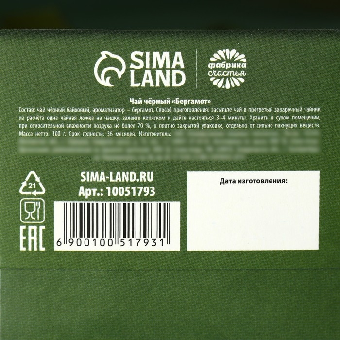 Состав: чай чёрный байховый, ароматизатор: бергамот.
