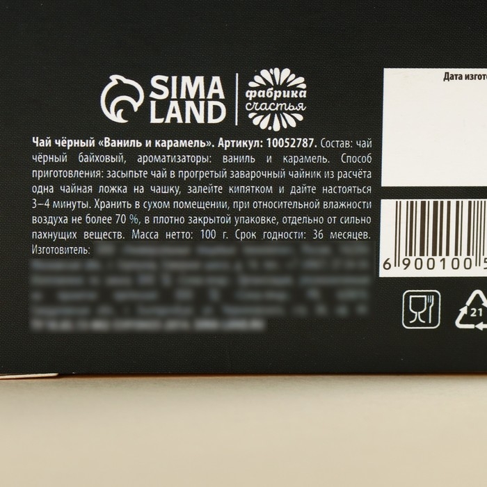 Чай чёрный «Цвети от счастья», вкус: ваниль и карамель, 100 г.