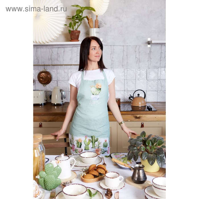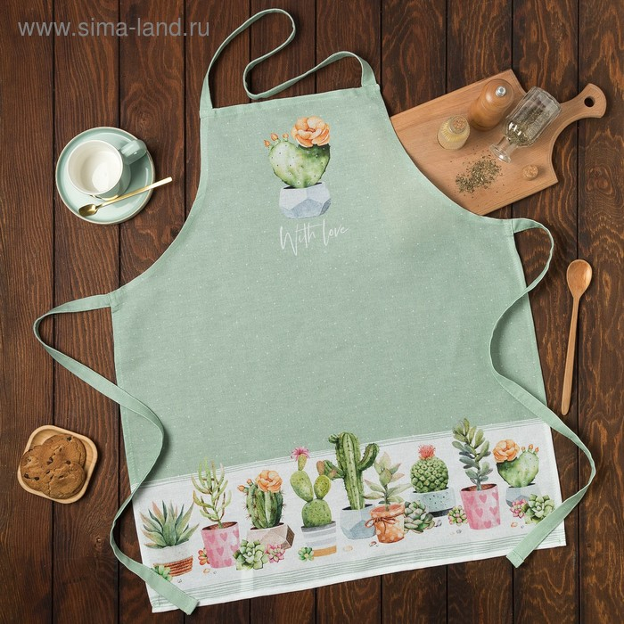 Фартук "Этель" Кактусы 70х60 см см, 100% хлопок, рогожка 160 гр/м2
