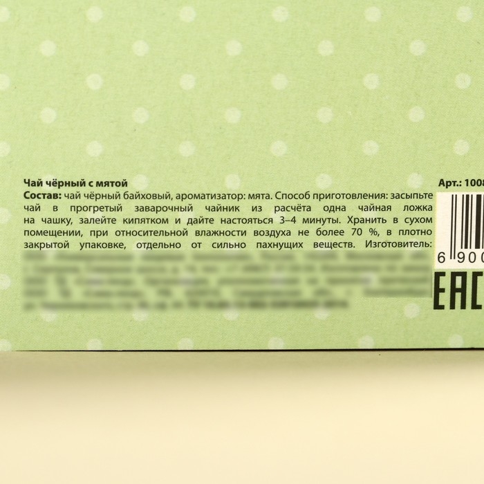 Состав: чай чёрный байховый, ароматизатор: мята.