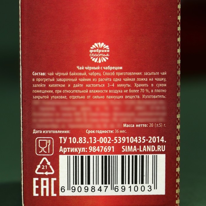Чай чёрный в бутылке «Тому, кто может всё», вкус: чабрец, 25 г.