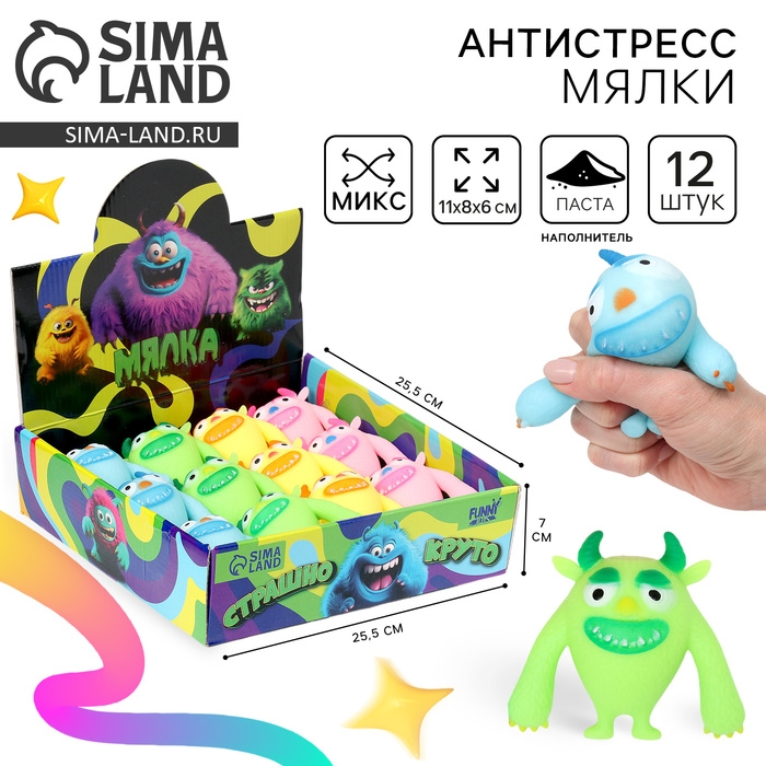Антистресс сквиш мялка «Монстр», с пастой, в шоубоксе