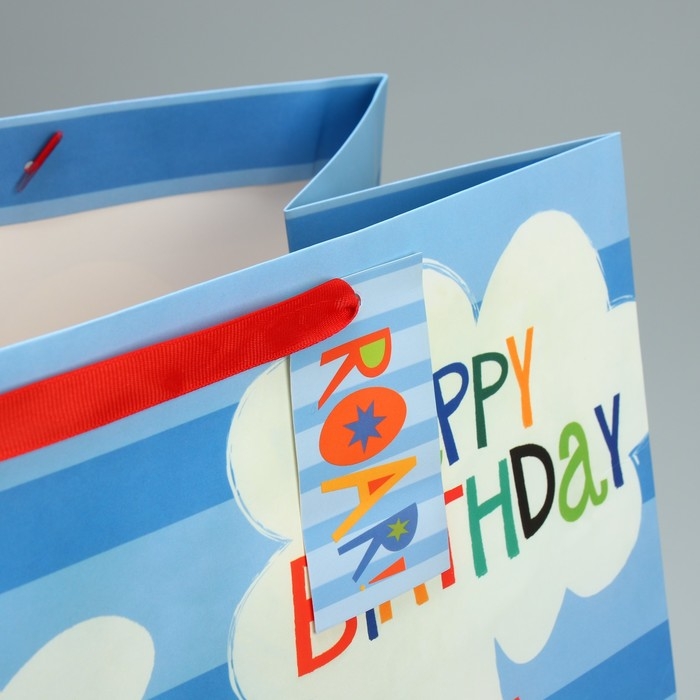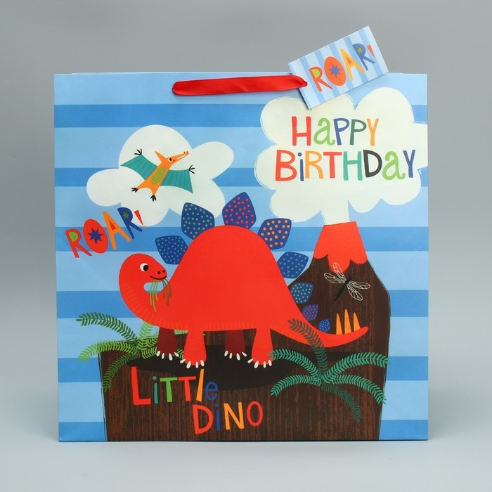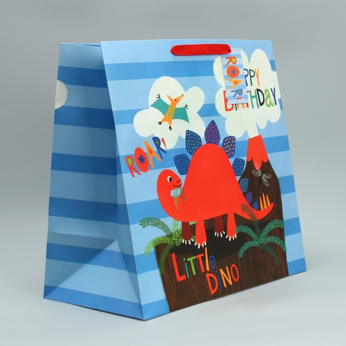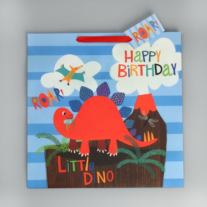 Пакет подарочный, упаковка, «Динозавр: С Днём рождения!», 38 х 38 х 21 см