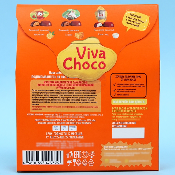 Конфеты шоколадные с кремовой начинкой «VivaChoco CAT», апельсин. 170 г