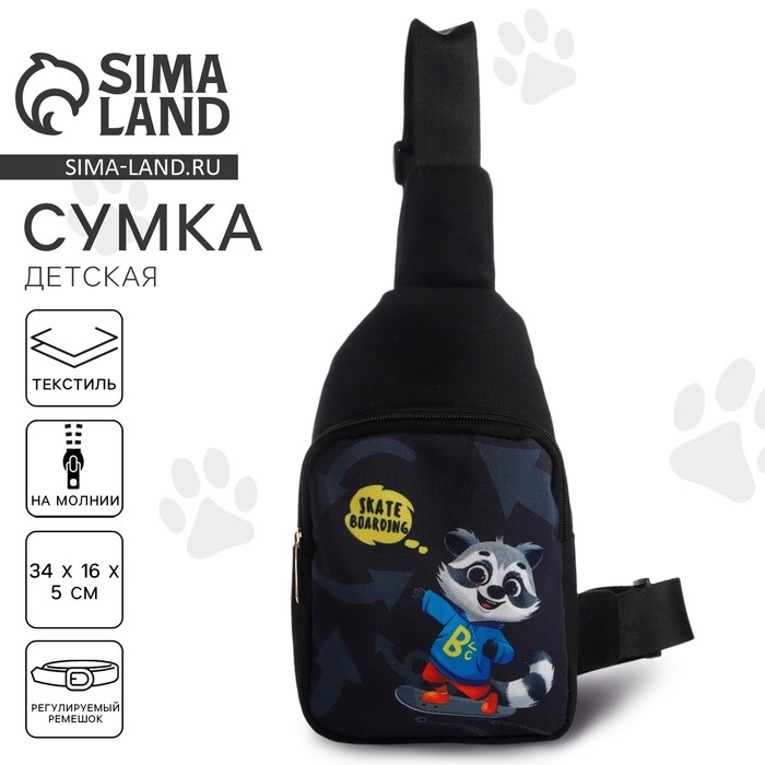 Сумка детская для мальчика через плечо «Енот на скейте»