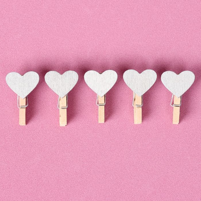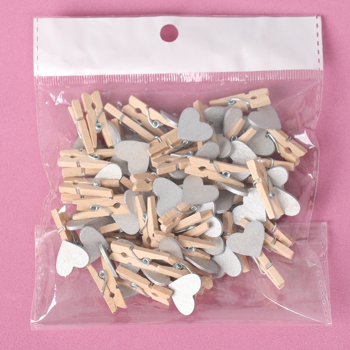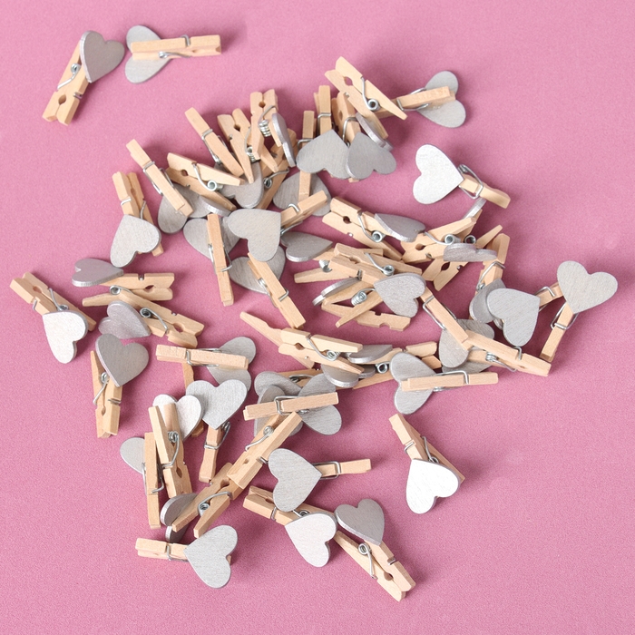 Набор декоративных прищепок «Сердечки», серебряного цвета, набор 50 шт.