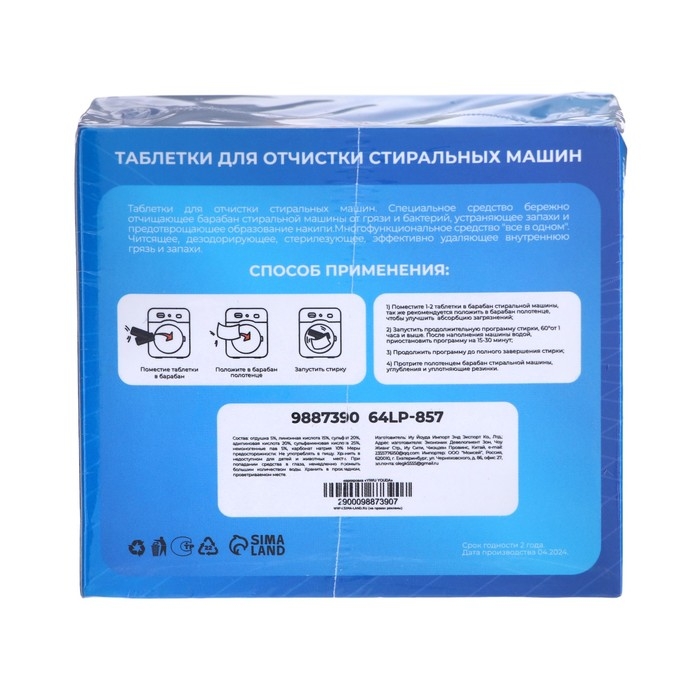 - Безопасный и простой в использовании: Каждая упаковка содержит 12 таблеток, достаточных для ряда профилактических процедур. Просто положите одну таблетку в барабан машины и запустите самую продолжительную программу стирки с максимальной температурой.
