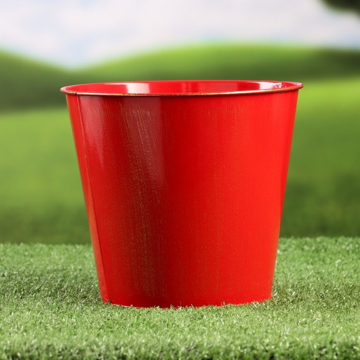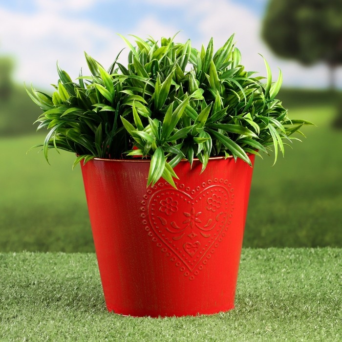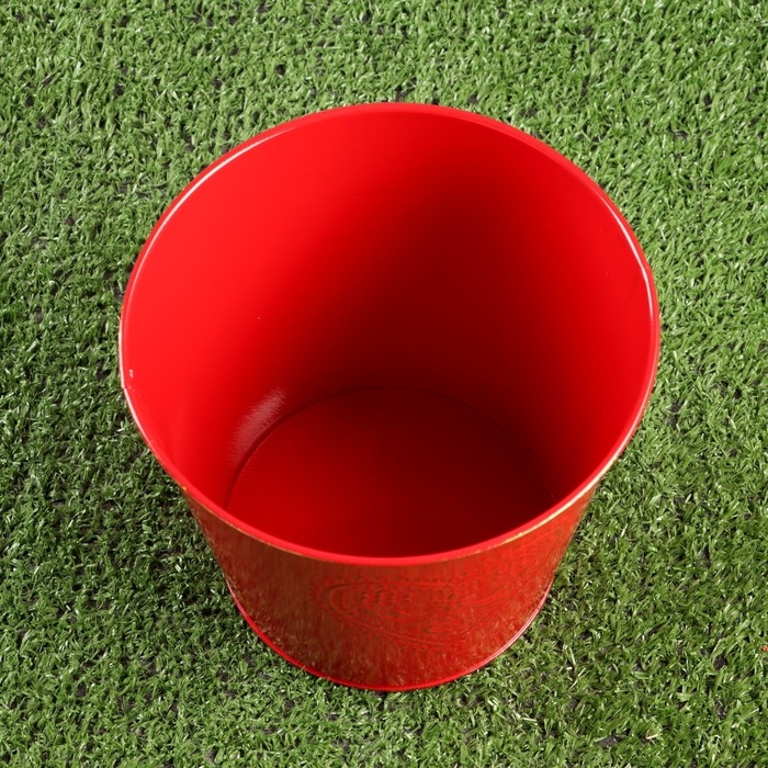 Кашпо "Ведерко с сердцем" красное с позолотой, 18х18х15см