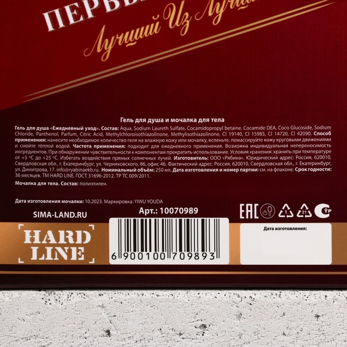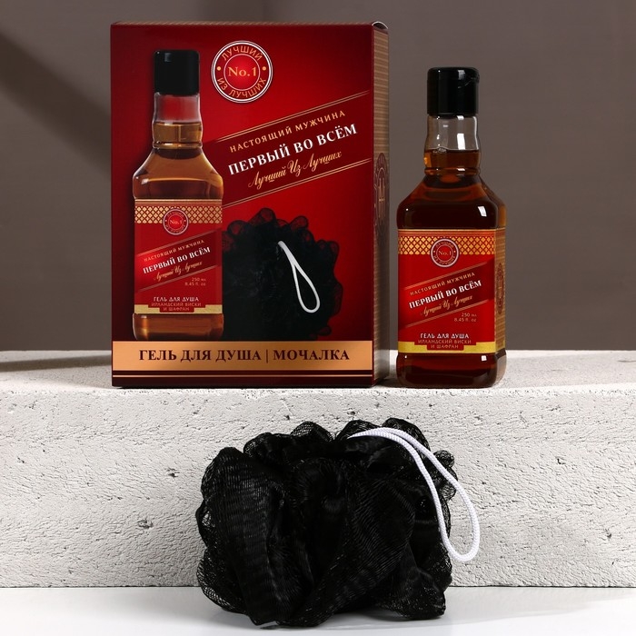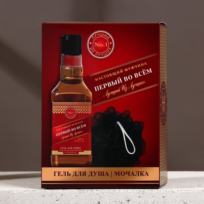 Подарочный набор косметики «Первый во всём», гель для душа во флаконе виски 250 мл и мочалка для тела, Новый Год