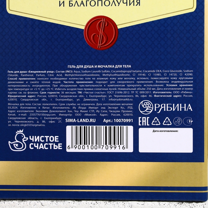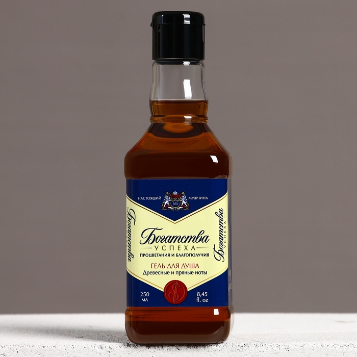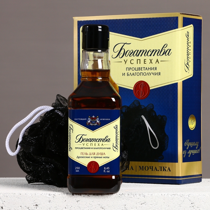 Подарочный набор косметики «Богатства и успеха!», гель для душа во флаконе виски 250 мл и мочалка для тела, Новый Год