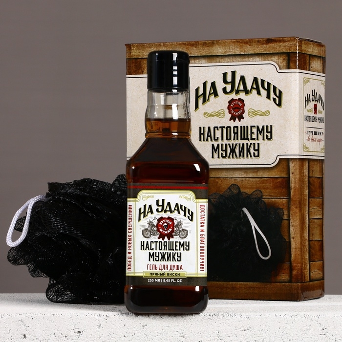 Подарочный набор косметики «На удачу», гель для душа во флаконе виски 250 мл и мочалка для тела, Новый Год