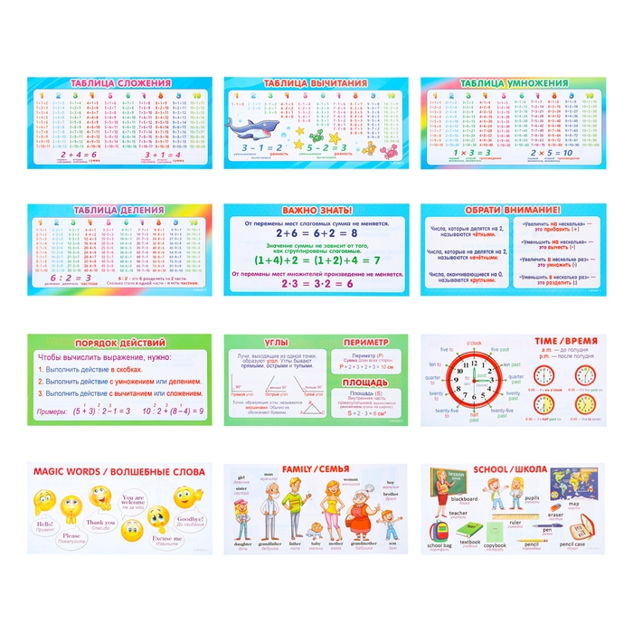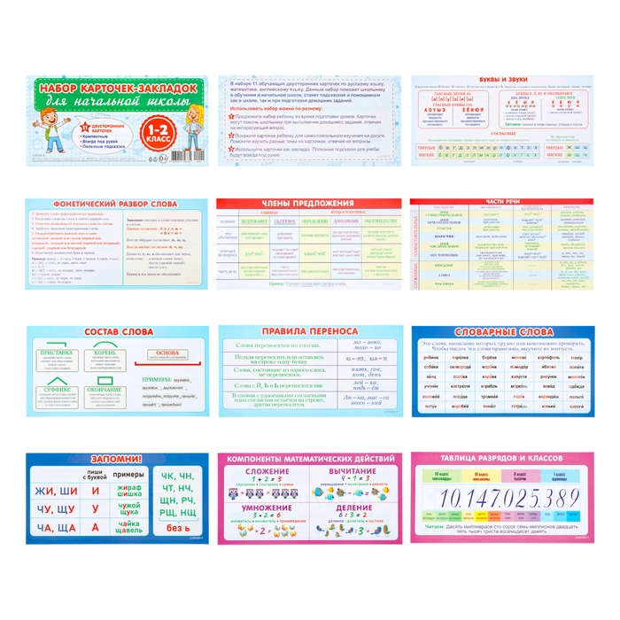Набор карточек-закладок "Для начальной школы" 1-2 класс, 10 карточек, 20x10 см