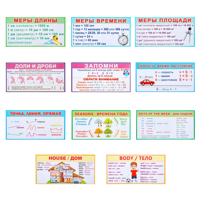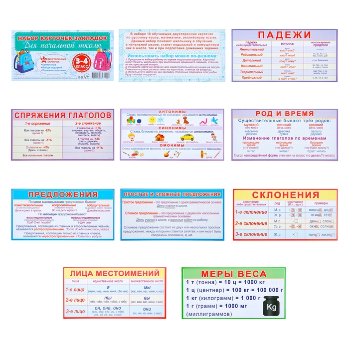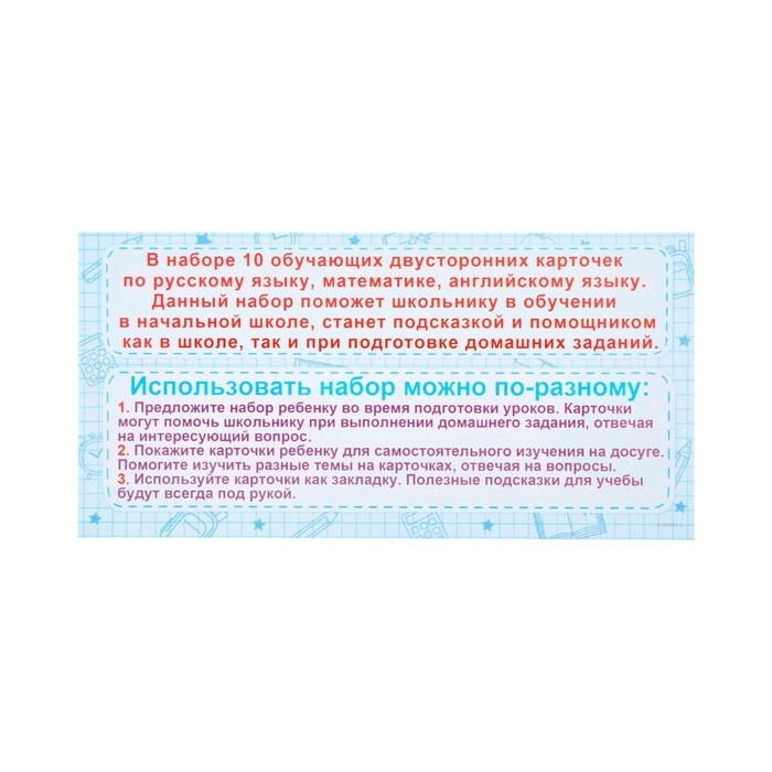 Набор карточек-закладок "Для начальной школы" 3-4 класс, 10 карточек, 20x10 см