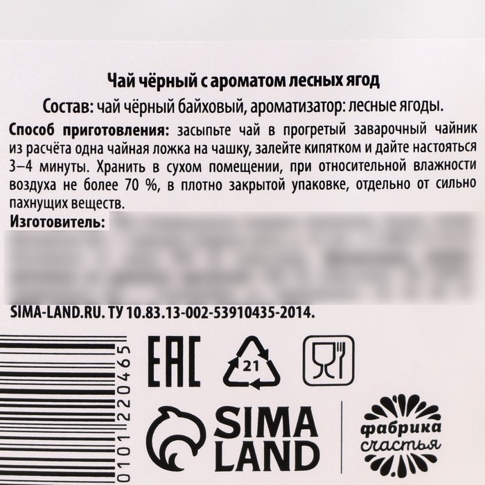 Состав: чай чёрный байховый, ароматизатор: лесные ягоды.