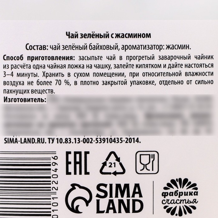 Состав: чай чёрный байховый, ароматизатор: жасмин.