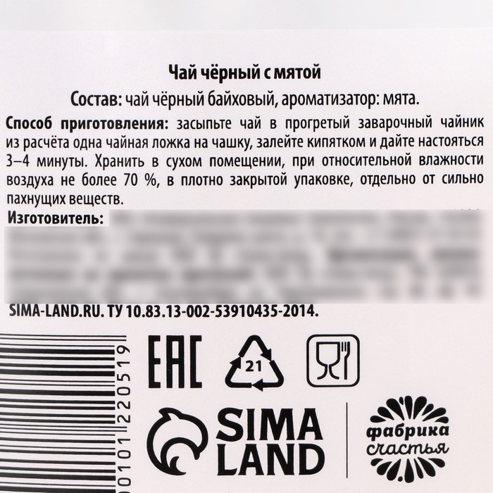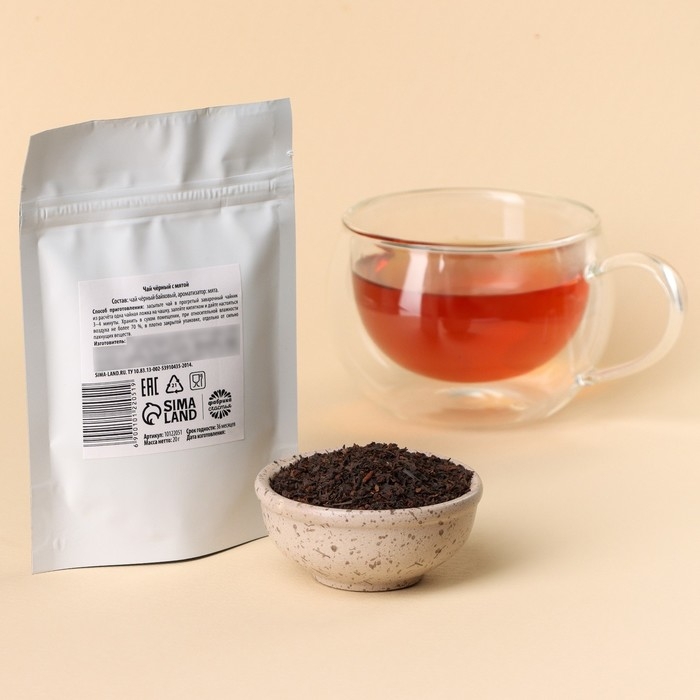 Состав: чай чёрный байховый, ароматизатор: мята.