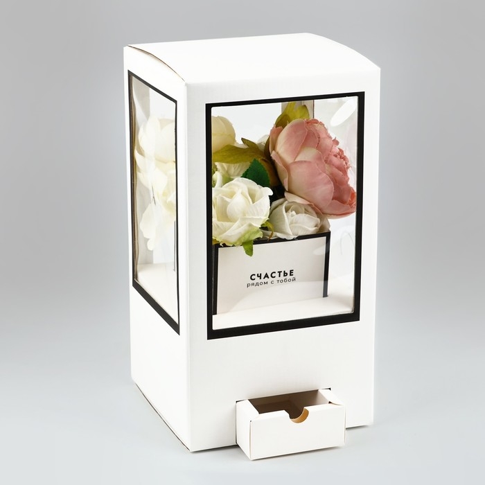 Коробка подарочная для цветов с вазой из МГК складная, упаковка, «Счастье рядом», 16 х 23 х 16 см